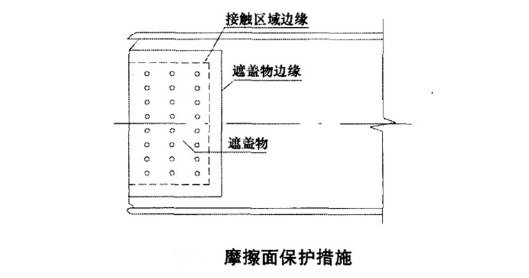 1、在對螺栓、連接板的運輸和保存過程中,應(yīng)輕裝、輕卸,防止損傷螺紋和連接板 。此外還應(yīng)采取一定的防潮 、防銹 和防沾染贓物等相應(yīng)措施,保護(hù)摩擦面,對摩擦面已被污染的連接板等 , 應(yīng)進(jìn)行相應(yīng)的處理才能使用。圖是一種簡便可行的保護(hù)摩擦面的方法。在防腐施工前,將紙張等遮蓋物,覆蓋在摩擦面之上,遮蓋物四邊要 寬于接觸區(qū)域邊緣,并且用膠帶將遮蓋物邊緣進(jìn)行粘貼密封 。