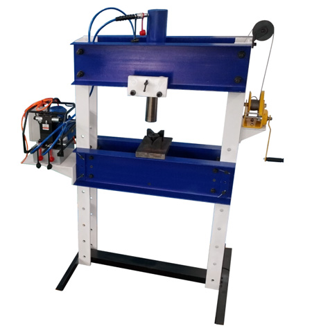 油缸工作頭利用滾輪可沿著上梁滑移,在做偏心壓接工作時(shí)鎖定于某一位置;